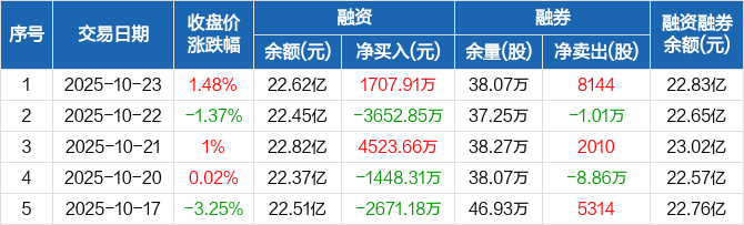 中控技术:融资净买入1707.91万元,融资余额22.62亿元(10-23)