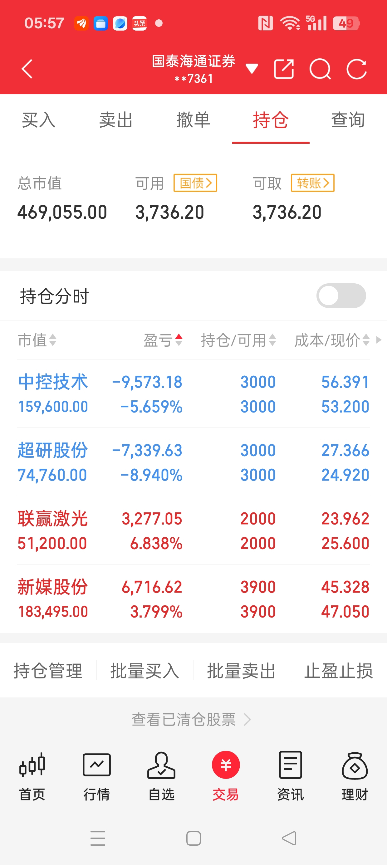 中控技术从赢利变成亏钱了,昨天补了点仓,看看本周能不能扭亏为盈了,反正不赚钱坚决