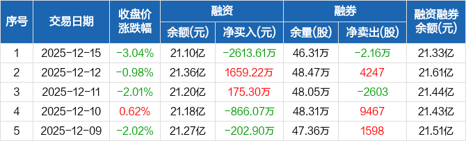 中控技术:融资净偿还2613.61万元,融资余额21.1亿元(12-15)
