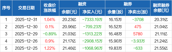 中控技术:连续5日融资净偿还累计1.33亿元(12-31)