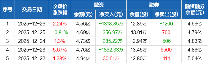 厦钨新能:连续4日融资净偿还累计3823.37万元(12-26)