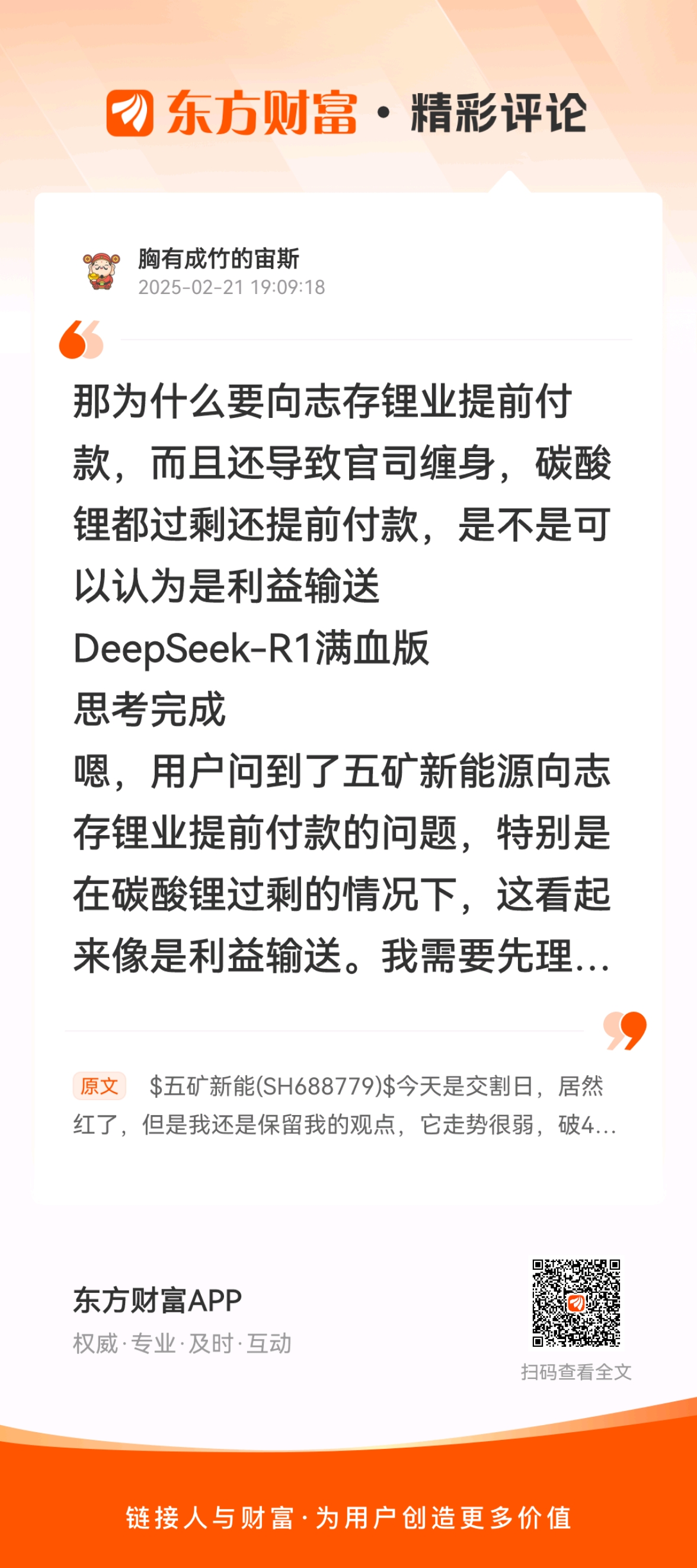 //@胸有成竹的宙斯 :那为什么要向志存锂业提前付款,而且还导致官司缠身,碳酸锂都过剩还提前付款,是不是可以认为是利益输送