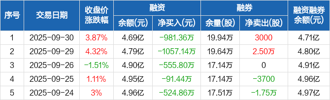 五矿新能:连续5日融资净偿还累计3210.61万元(09-30)