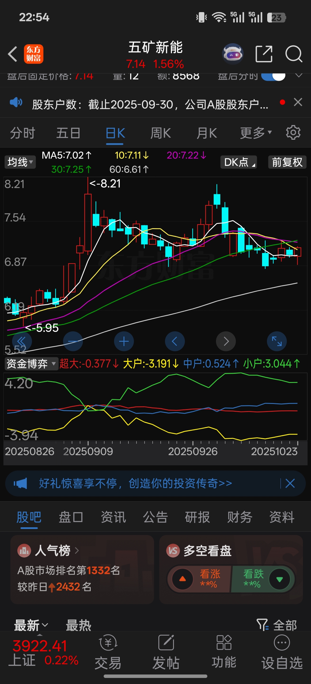 五矿新能最不理解的地方是它的超级主力线是不动的,和寒武纪的小户线也是不动的。寒武