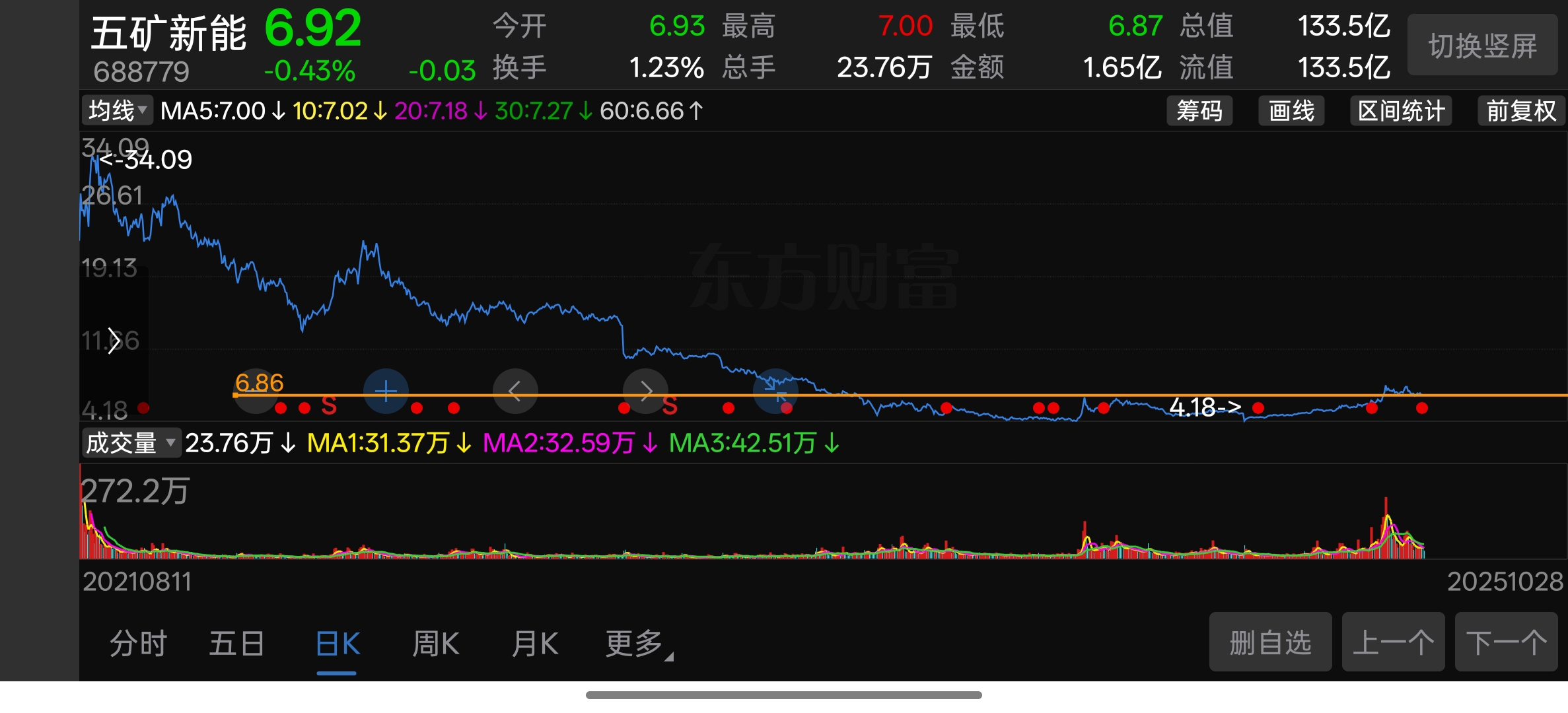 五矿可能要玩一把大的。未来一个礼拜不要低于6.92,换手率不要高于1%