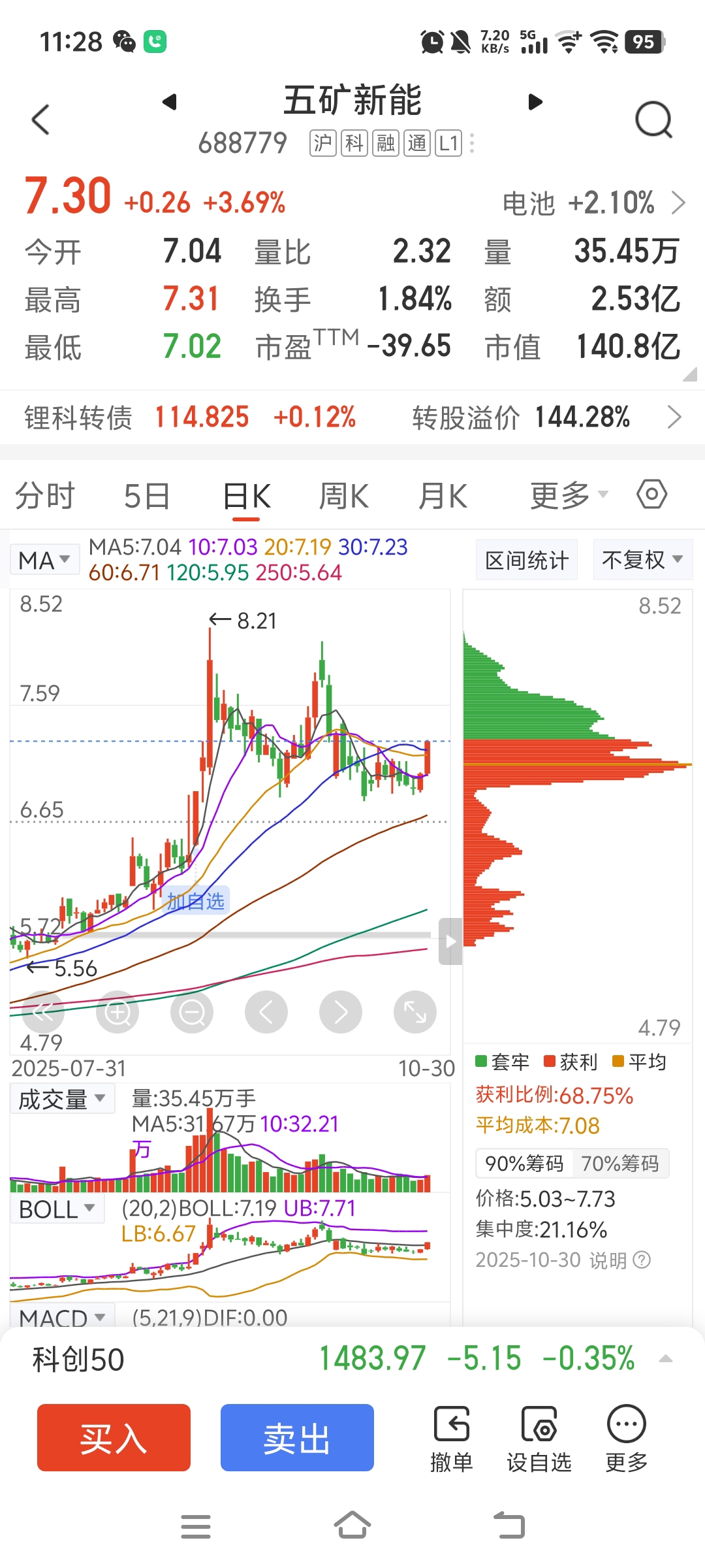 $五矿新能(SH688779)$ 已经冲过最大筹码峰,上方压力很小了,主力加把劲,拉到12元。