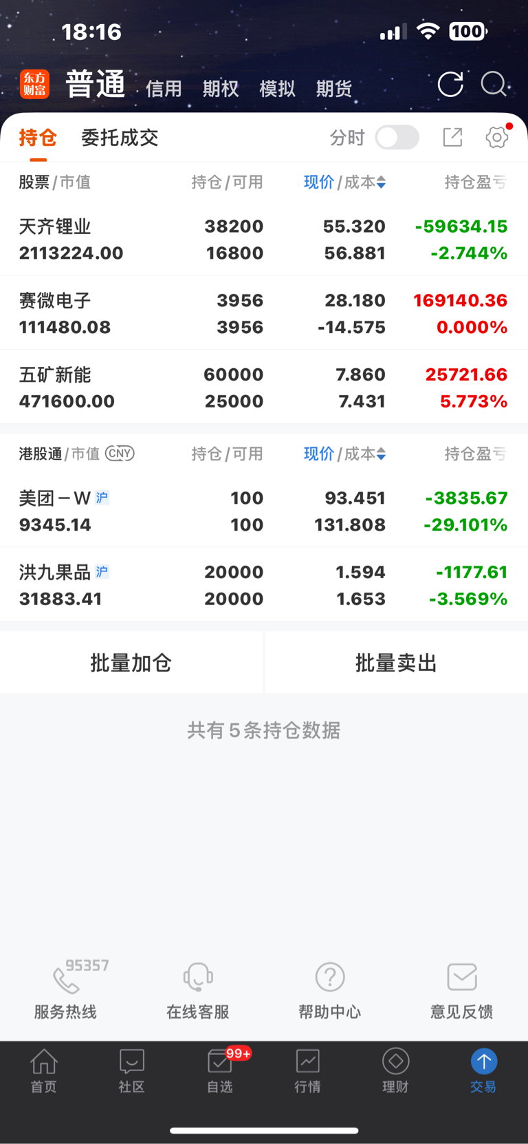 看谁熬得过谁,五矿终于让我挣钱了!赛微电子剩了点再看看!今天重仓进了天齐锂业、没