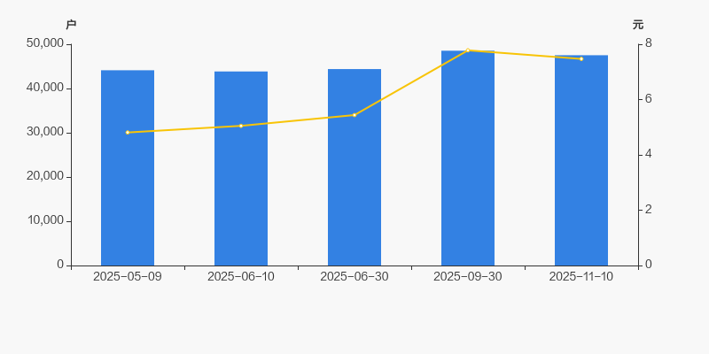 2025年5月9日至今,公司股东户数有所增长,区间涨幅为7.70%。2025年5月9日至2025年11月10日区间股价上涨55.30%。