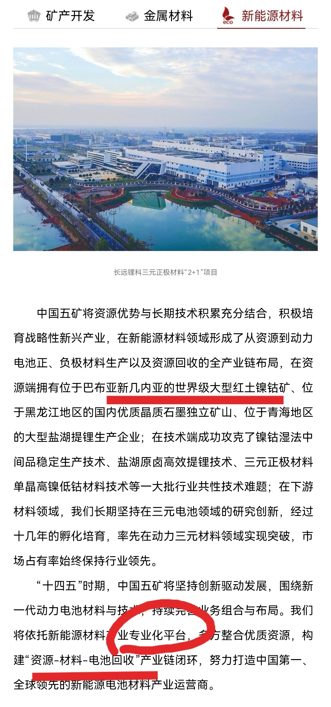 $五矿新能(SH688779)$ 五矿集团官网新能源材料和矿产开发、金属材料并列,看这句含金量:"我们将依托新能源材料产业专业化平台,多方整合优质资源,构建"资源﹣材料﹣电池回收"产业链闭环",是哪个专业化平台?镍钴锂装入的可能性非常大。$五矿发展(SH600058)$ $中国中冶(SH601618)$