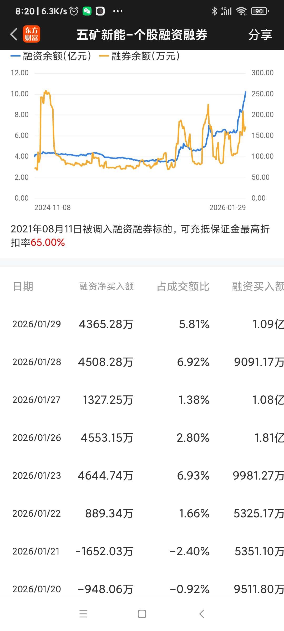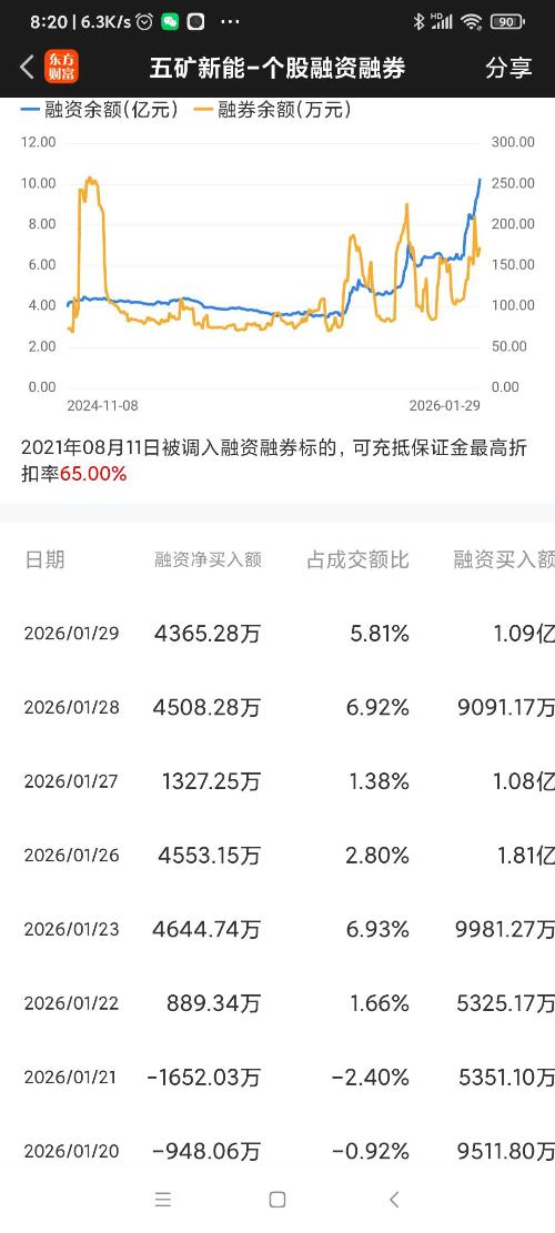 五矿新能,融资盘连续六天净买入。