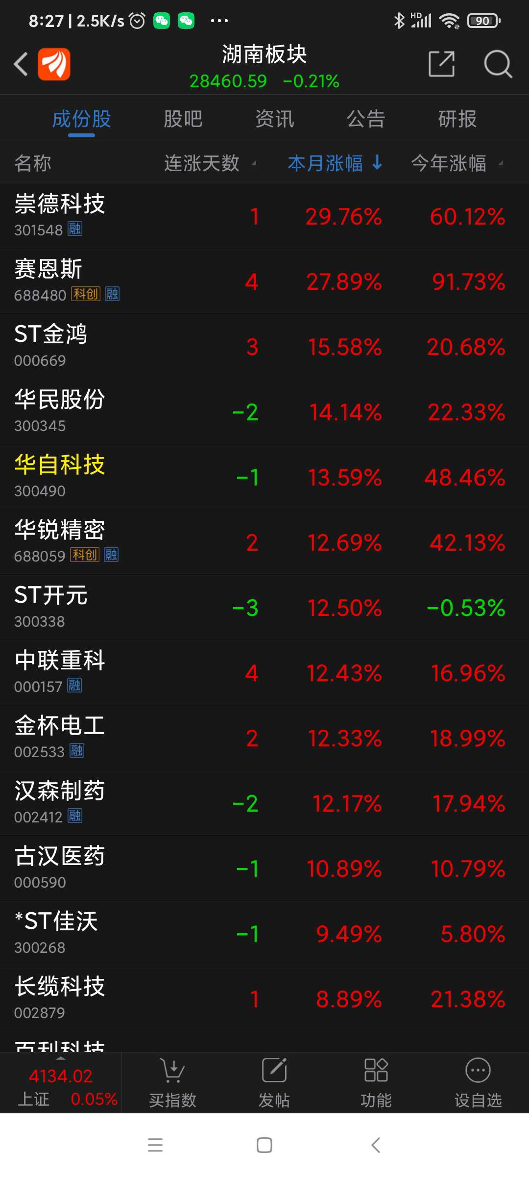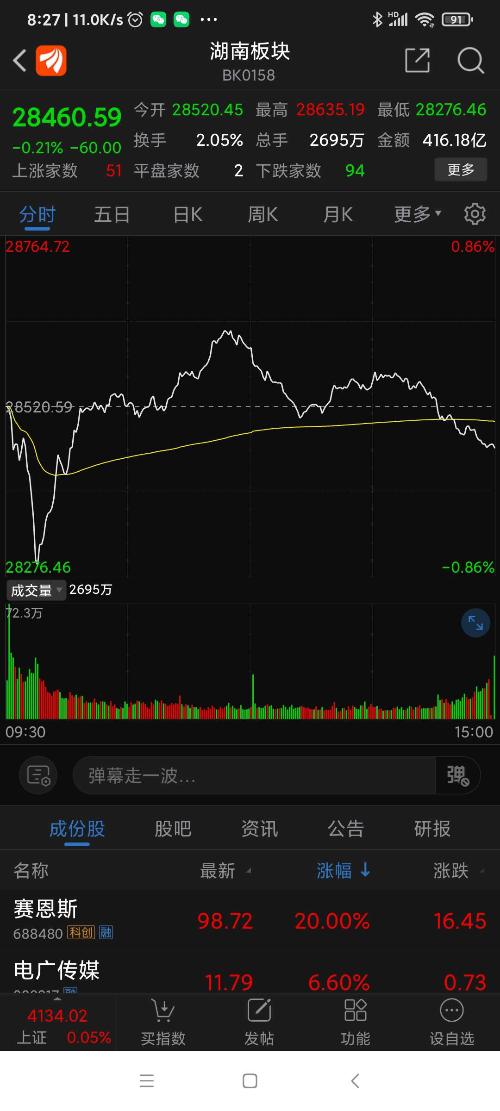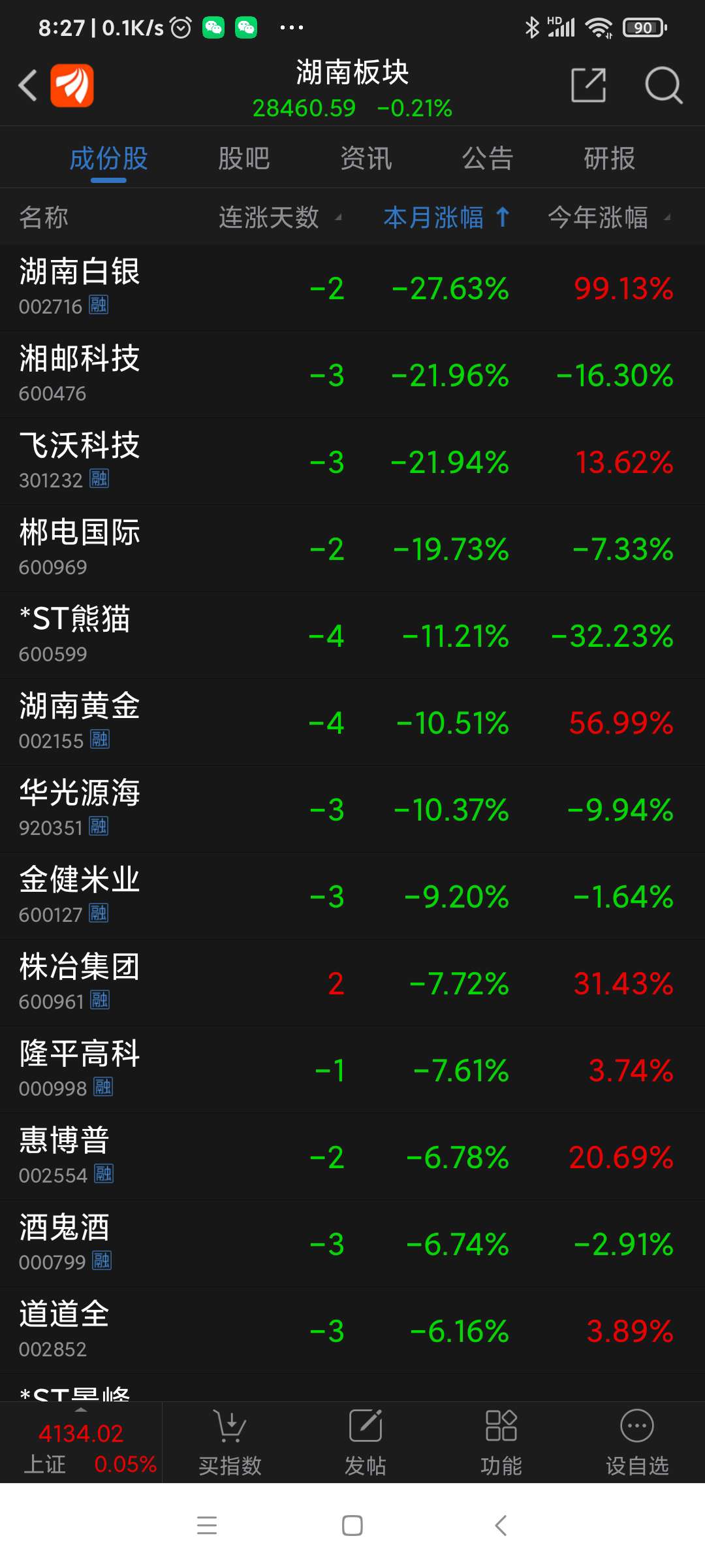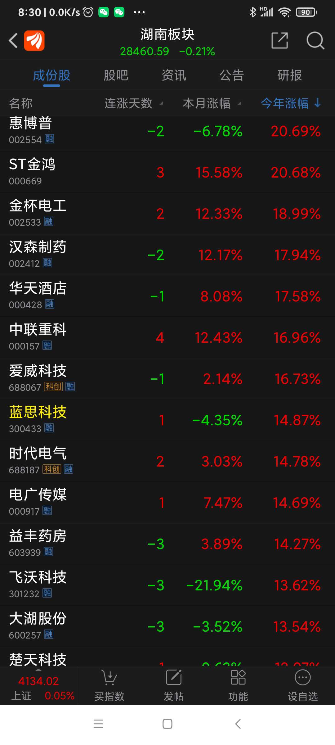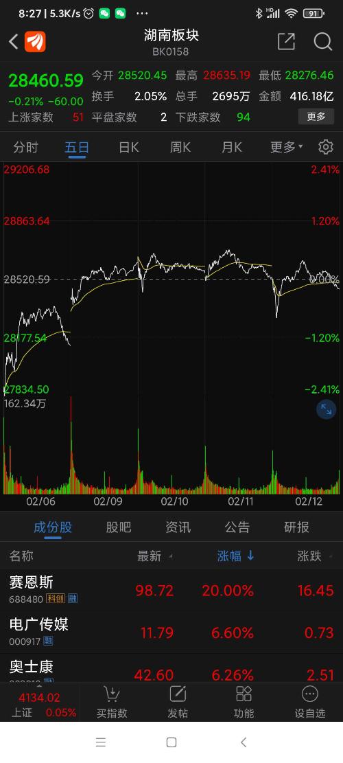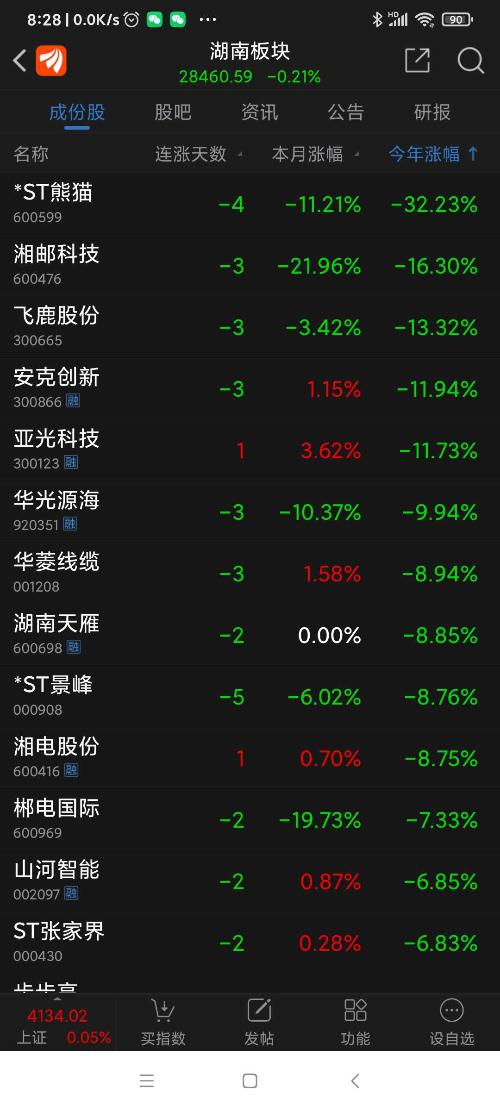 湖南板块昨日表现。