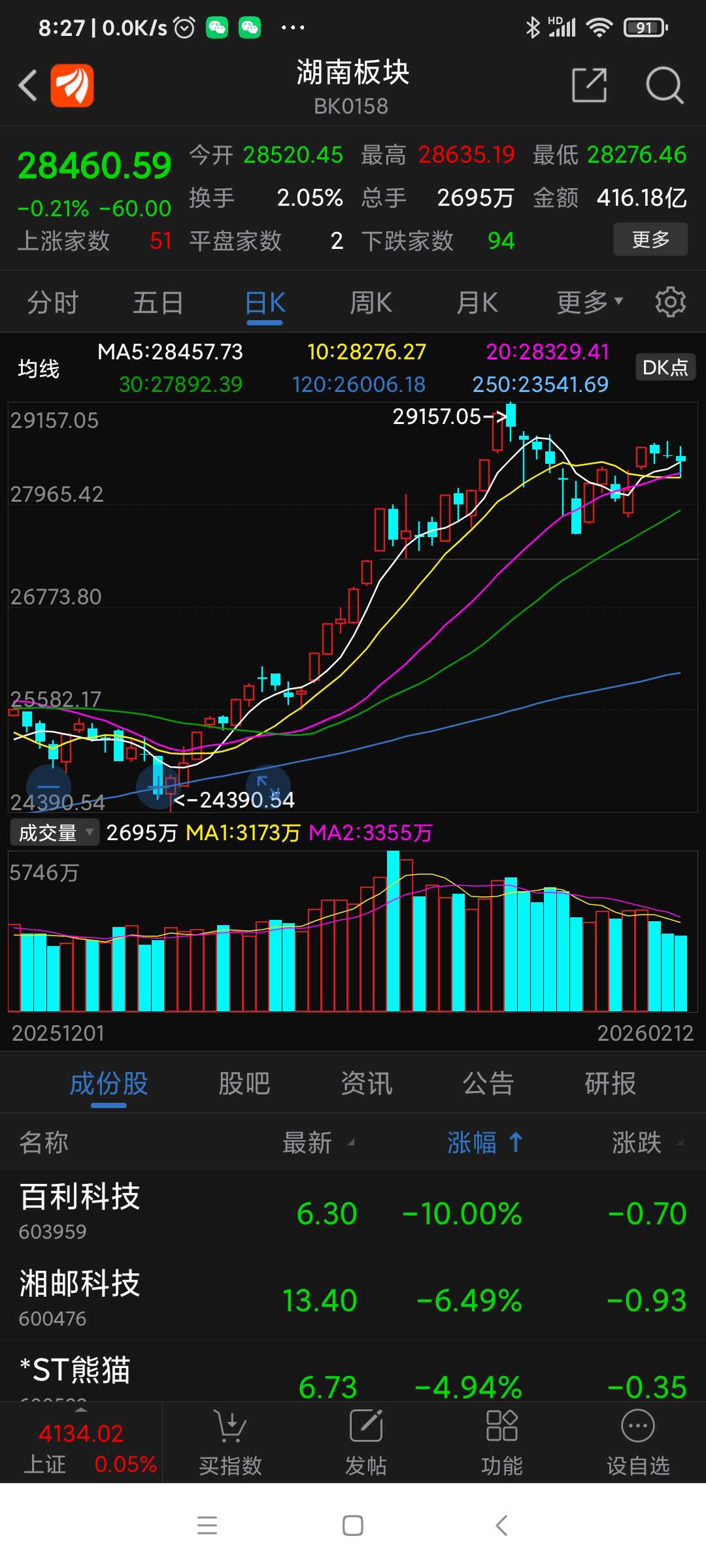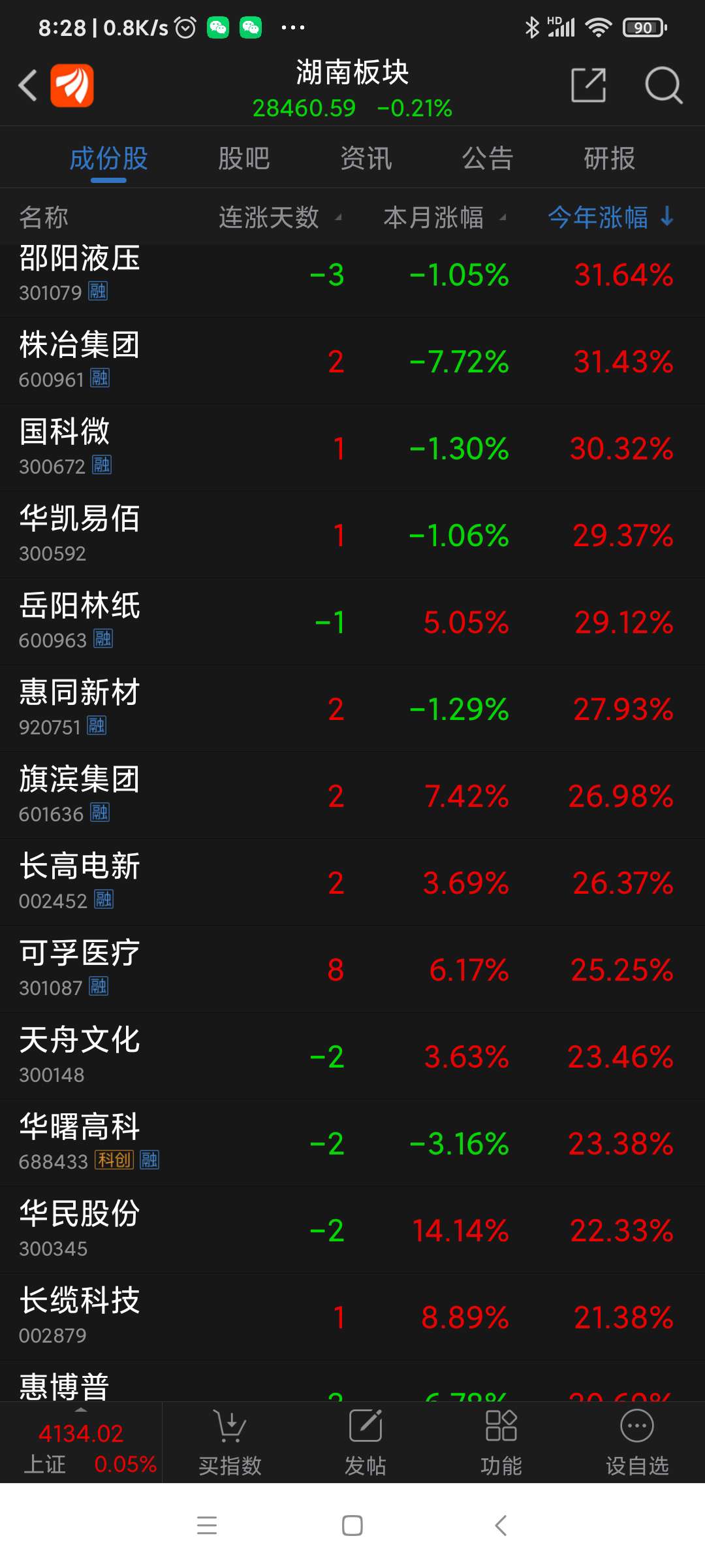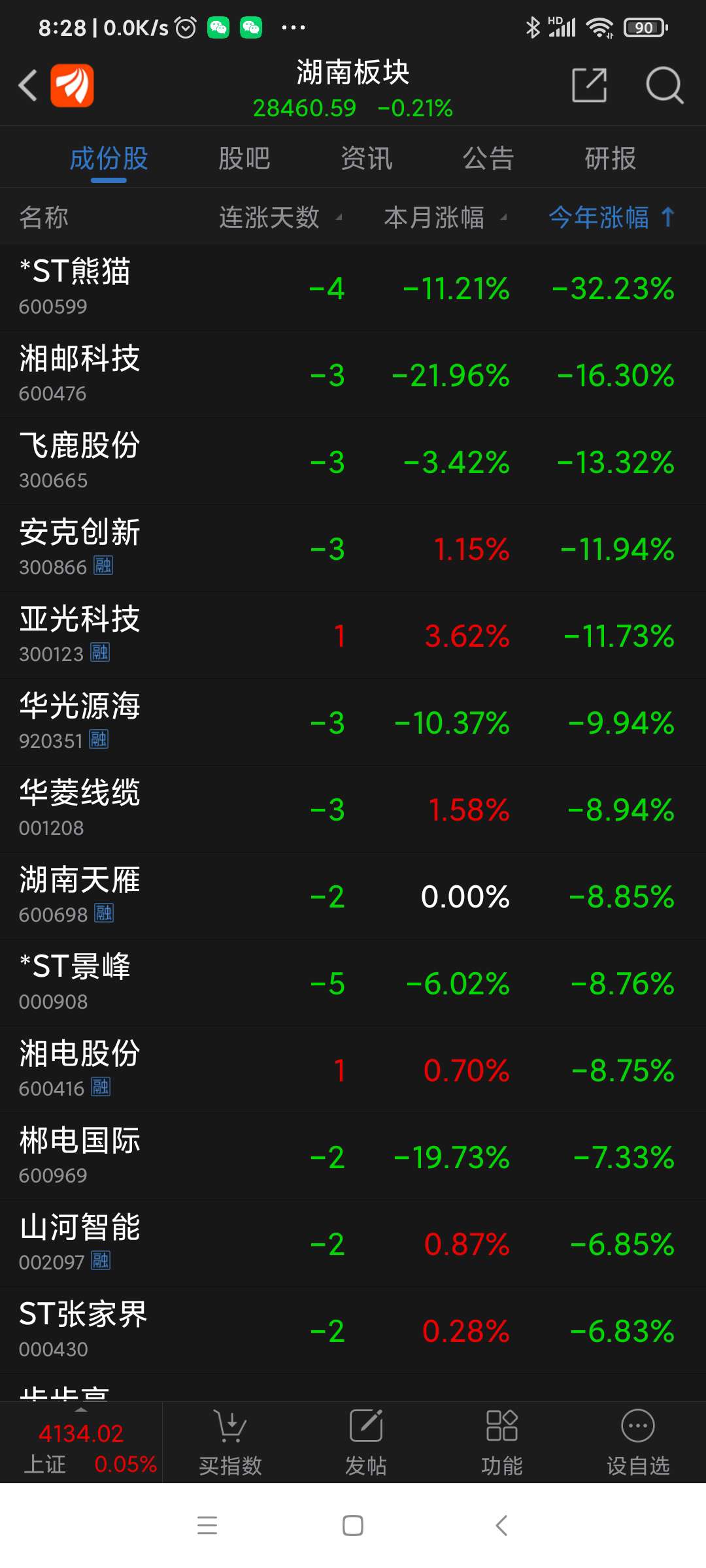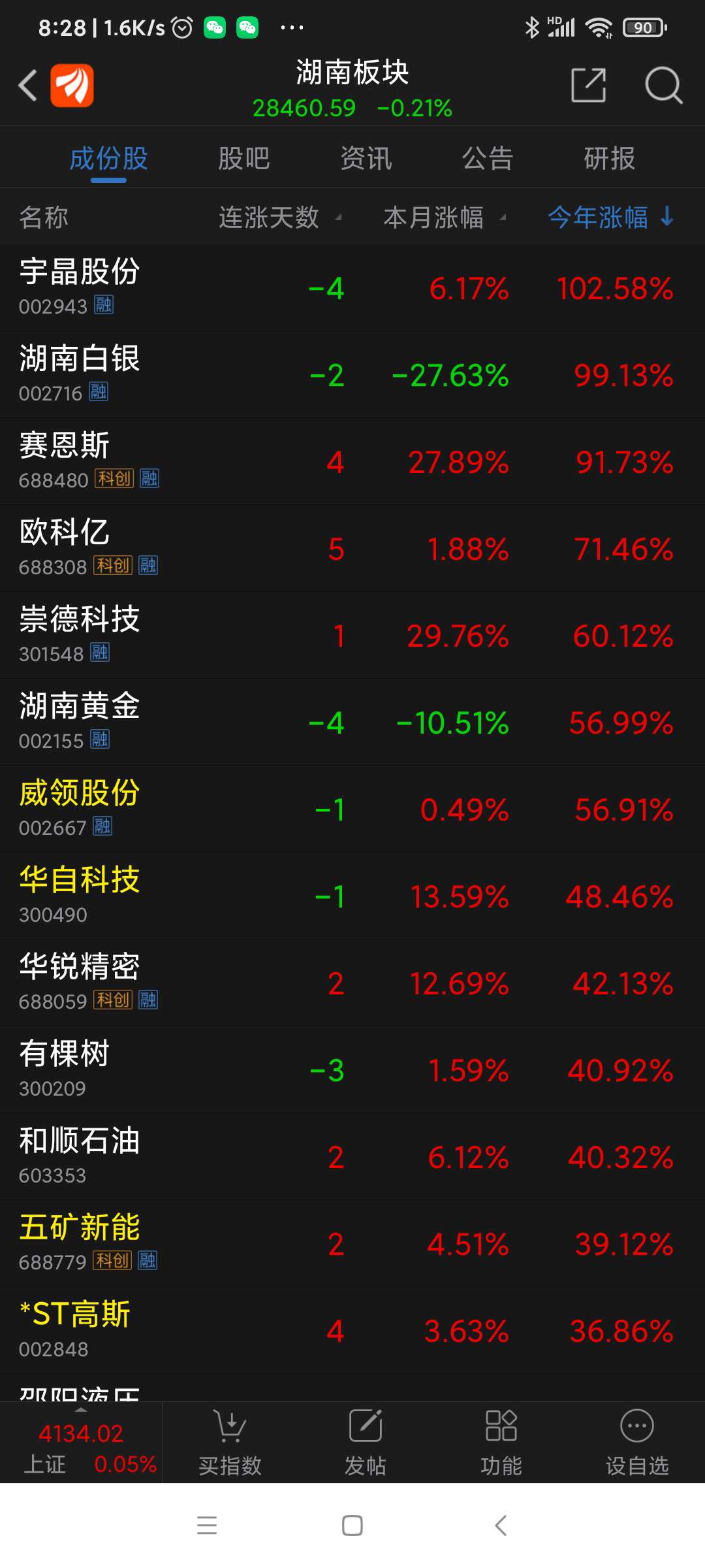 湖南板块昨日表现。
