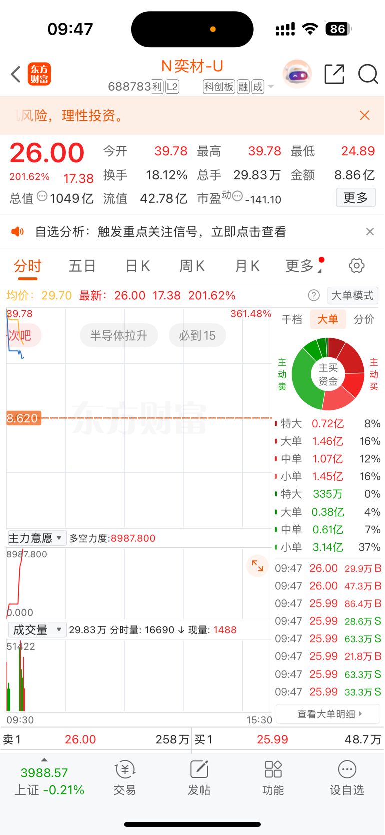 $N奕材-U(SH688783)$ 数据上看不明白,小单疯狂卖,主力接过去不少。
