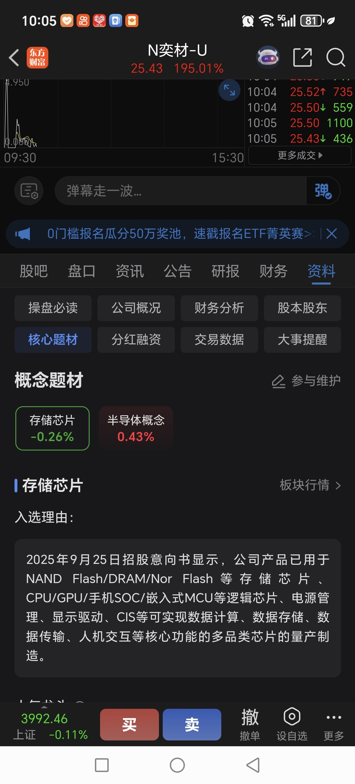 $N奕材-U(SH688783)$ 存储芯片的新股,应该涨500%以上