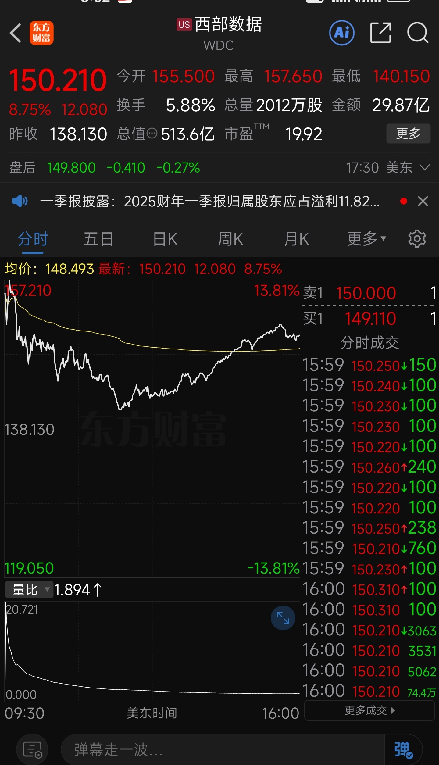 美存储西部数据大涨8%,周一稳了