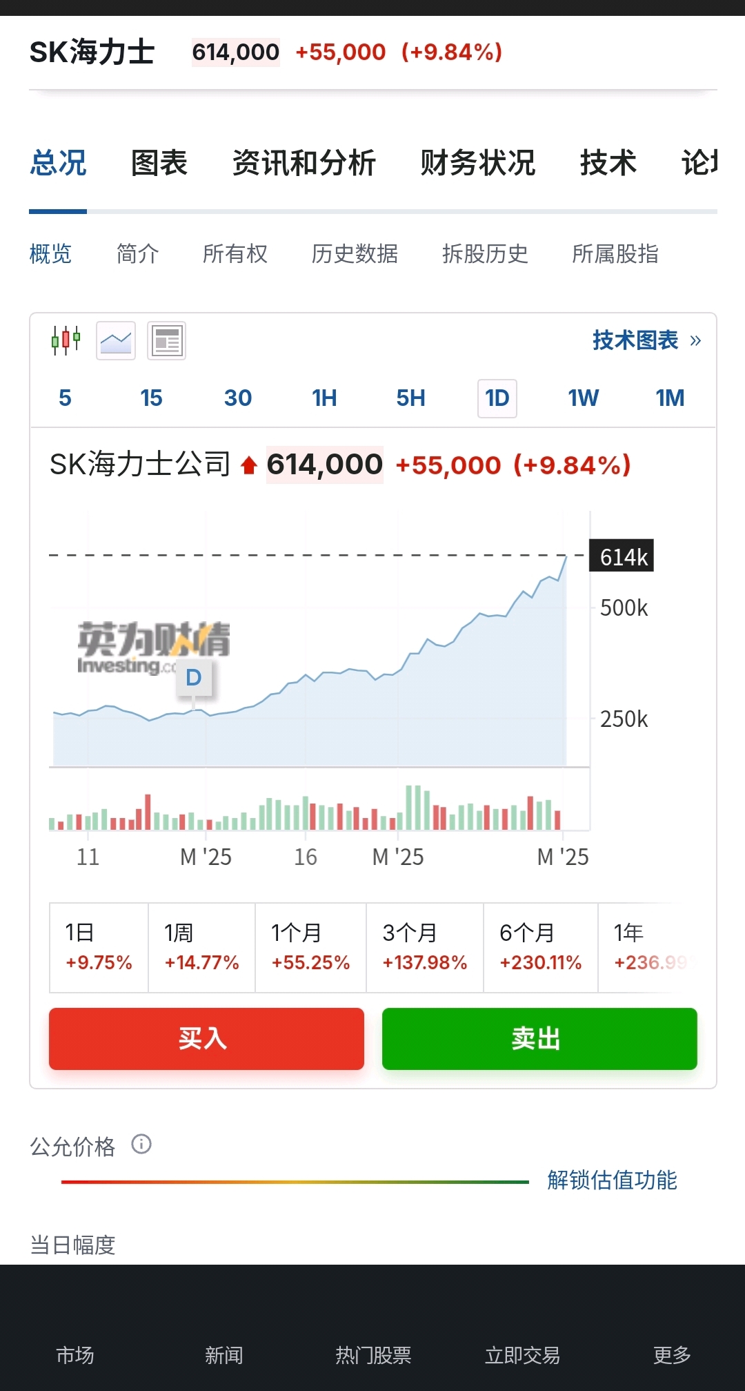 SK海力士今天再度大涨10%