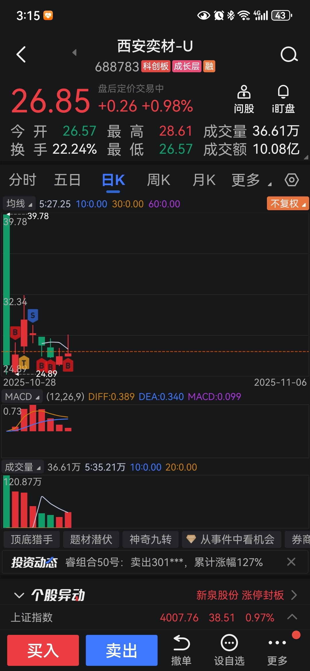 $西安奕材-U(SH688783)$ 觉得适合加就加,跌多的我就加多的!