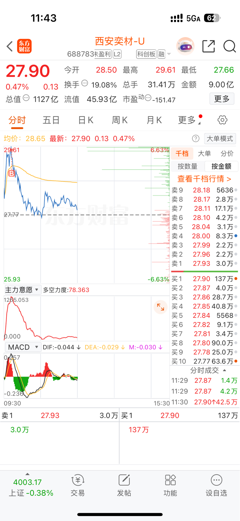 $西安奕材-U(SH688783)$  纪念一下5手登顶