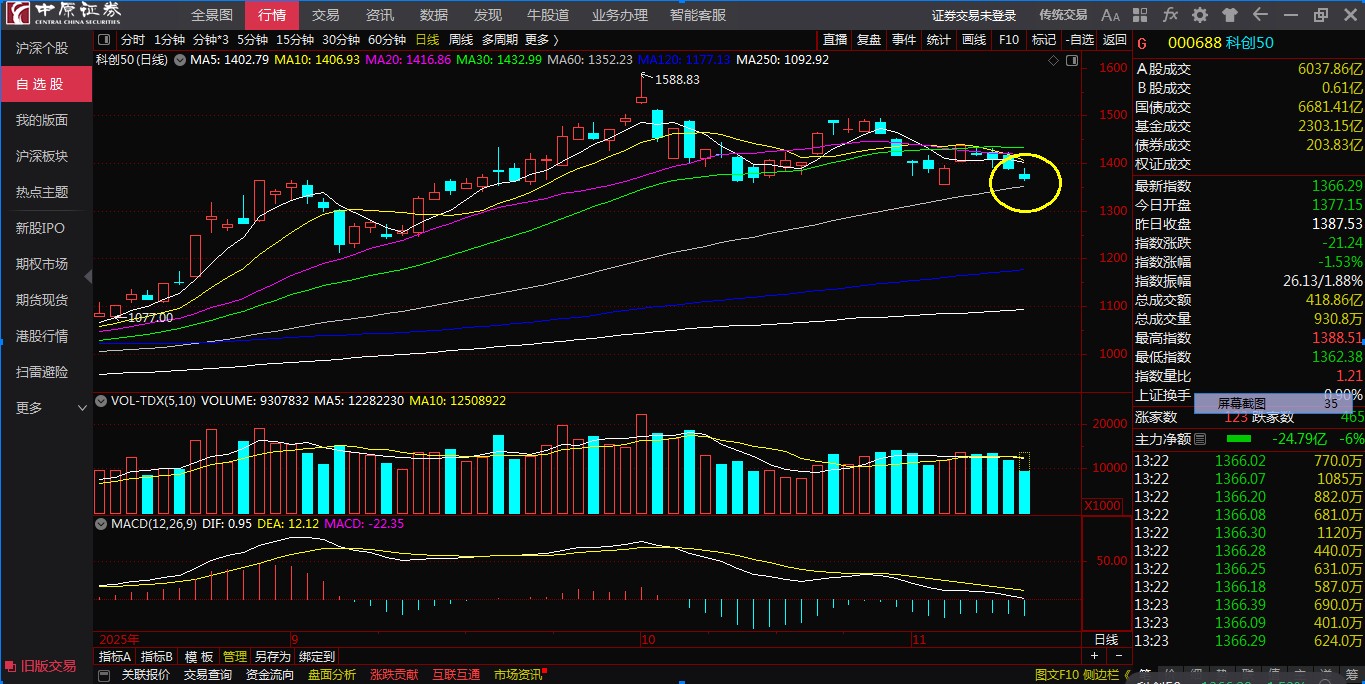 科创50指数向下明显,如果本周不拉起的话,破60日线,大盘将进入阶段调整。时间就相对长一些,估计到明年3月。