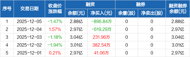西安奕材:融资净偿还896.84万元,融资余额2.88亿元(12-05)