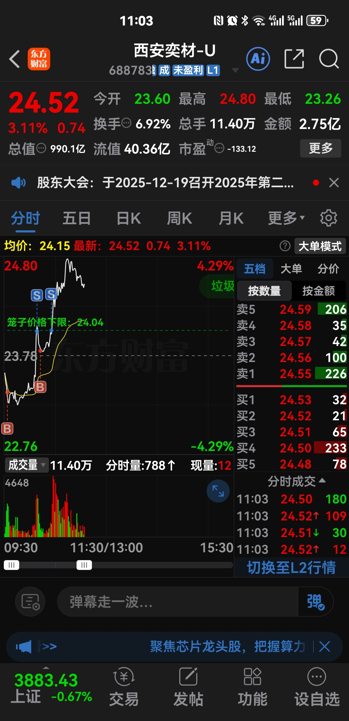 $西安奕材-U(SH688783)$ 该加仓时勿犹豫,该守护时要忍让。整了半天不如不动。24以下机会恐木有了。