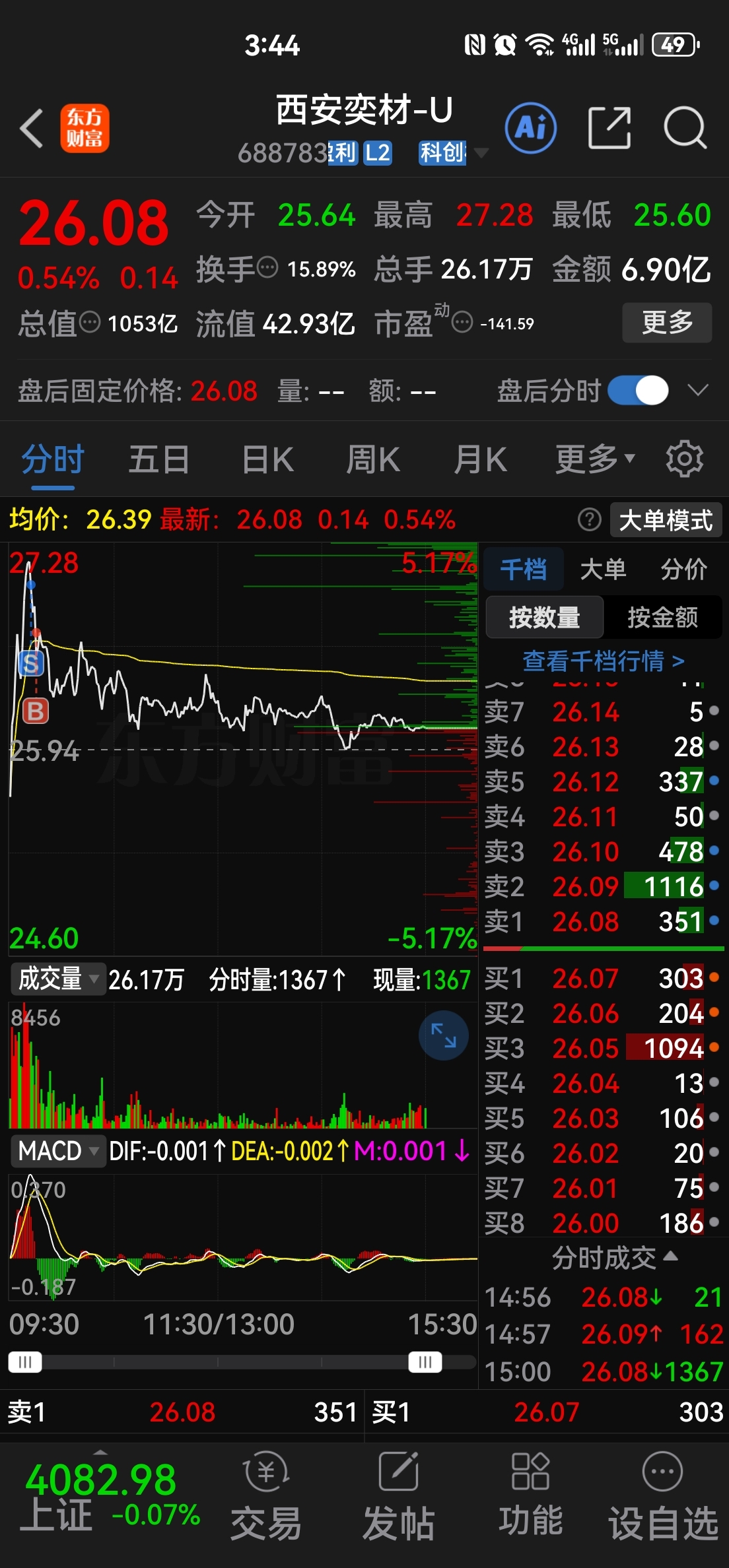 $西安奕材-U(SH688783)$ 今天做了个T,卖后只怕T飞,下来3毛就赶紧接上,虽有点早,但码子不能丢。