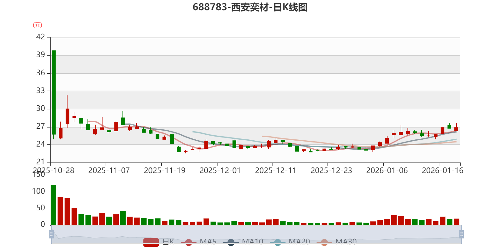 中证智能财讯西安奕材(688783)1月20日晚间披露2025年度业绩预告,预计2025年归母净利润亏损7.38亿元,上年同期亏损7.38亿元;扣非净利润亏损8.09亿元,上年同期亏损7.63亿元。以1月20日收盘价计算,西安奕材目前市盈率(TTM)约为-147.01倍,市净率(LF)约8.62倍,市销率(TTM)约41.4倍。