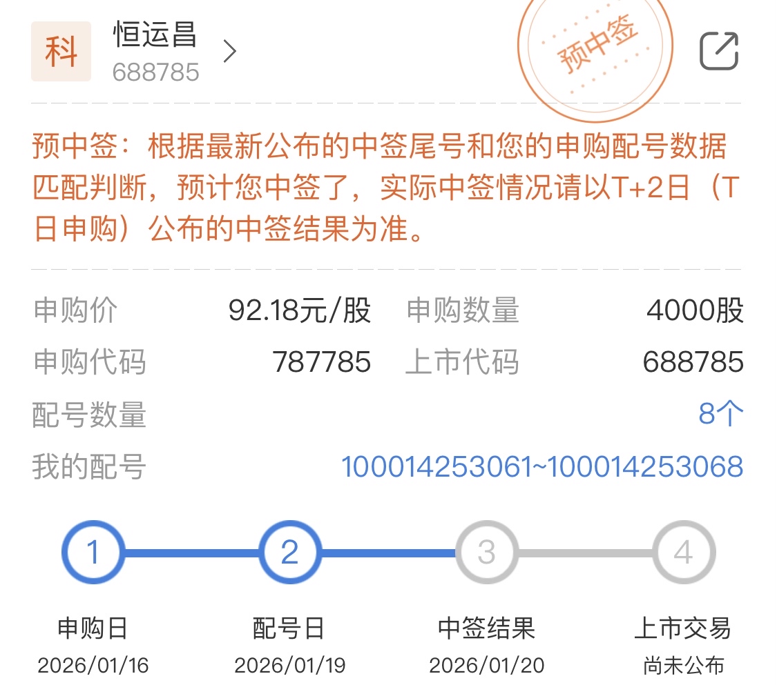 $恒运昌(SH688785)$ 第一次科创板中签,回血了!