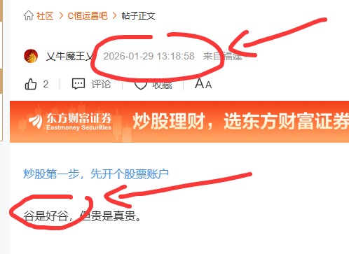 温馨提示: 1.根据《证券法》规定,禁止编造、传播虚假信息或者误导性信息,扰乱证券市场;2.用户在本社区发表的所有资料、言论等仅代表个人观点,与本网站立场无关,不对您构成任何投资建议。用户应基于自己的独立判断,自行决定证券投资并承担相应风险。《东方财富社区管理规定》