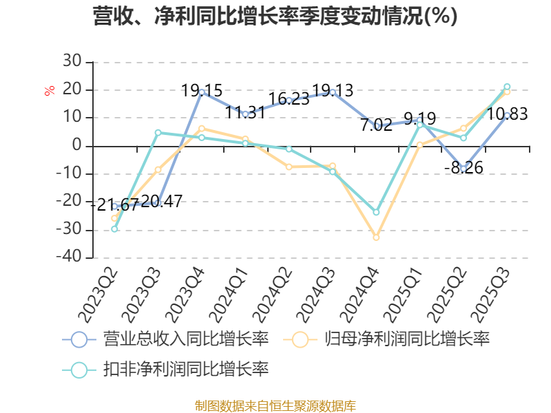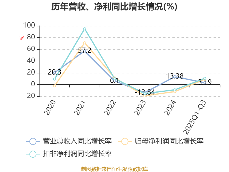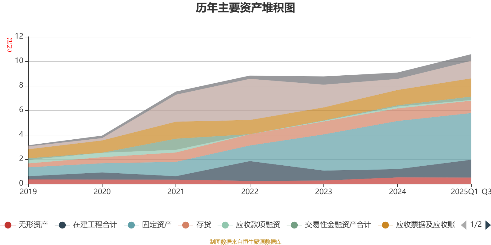 资产重大变化方面,截至2025年三季度末,公司固定资产较上年末减少2.93%,占公司总资产比重下降7.22个百分点;在建工程合计较上年末增加116.74%,占公司总资产比重上升6.33个百分点;货币资金较上年末增加57.98%,占公司总资产比重上升3.57个百分点;存货较上年末减少3.17%,占公司总资产比重下降1.93个百分点。