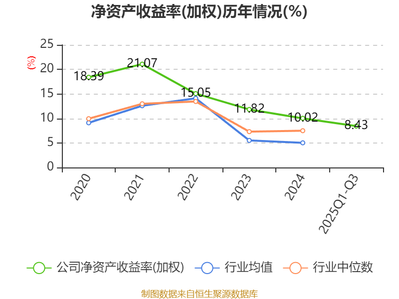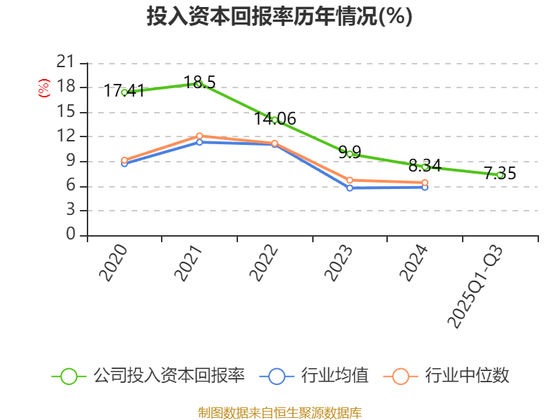 盈利能力方面, 2025年前三季度公司加权平均净资产收益率为8.43%,同比上升0.46个百分点。公司2025年前三季度投入资本回报率为7.35%,较上年同期上升0.38个百分点。