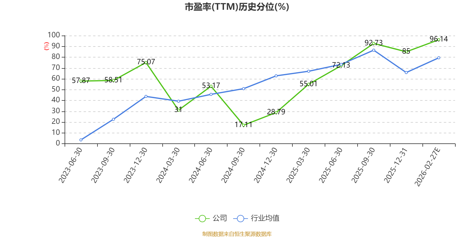 市盈率、市净率为负时,不显示当期分位数,会导致折线图中断。