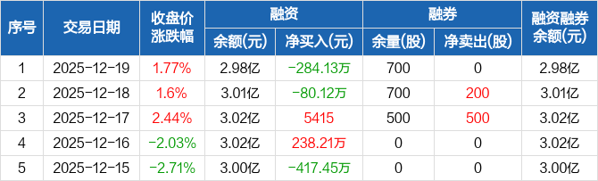 海天瑞声:融资净偿还284.13万元,融资余额2.98亿元(12-19)