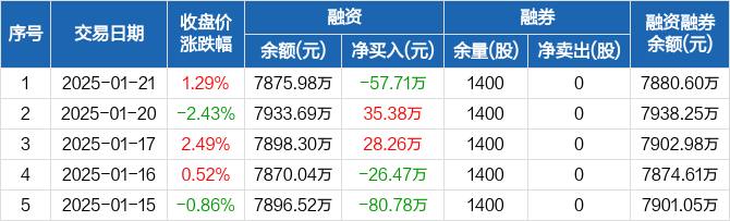 科思科技:融资净偿还57.71万元,融资余额7875.98万元(01-21)