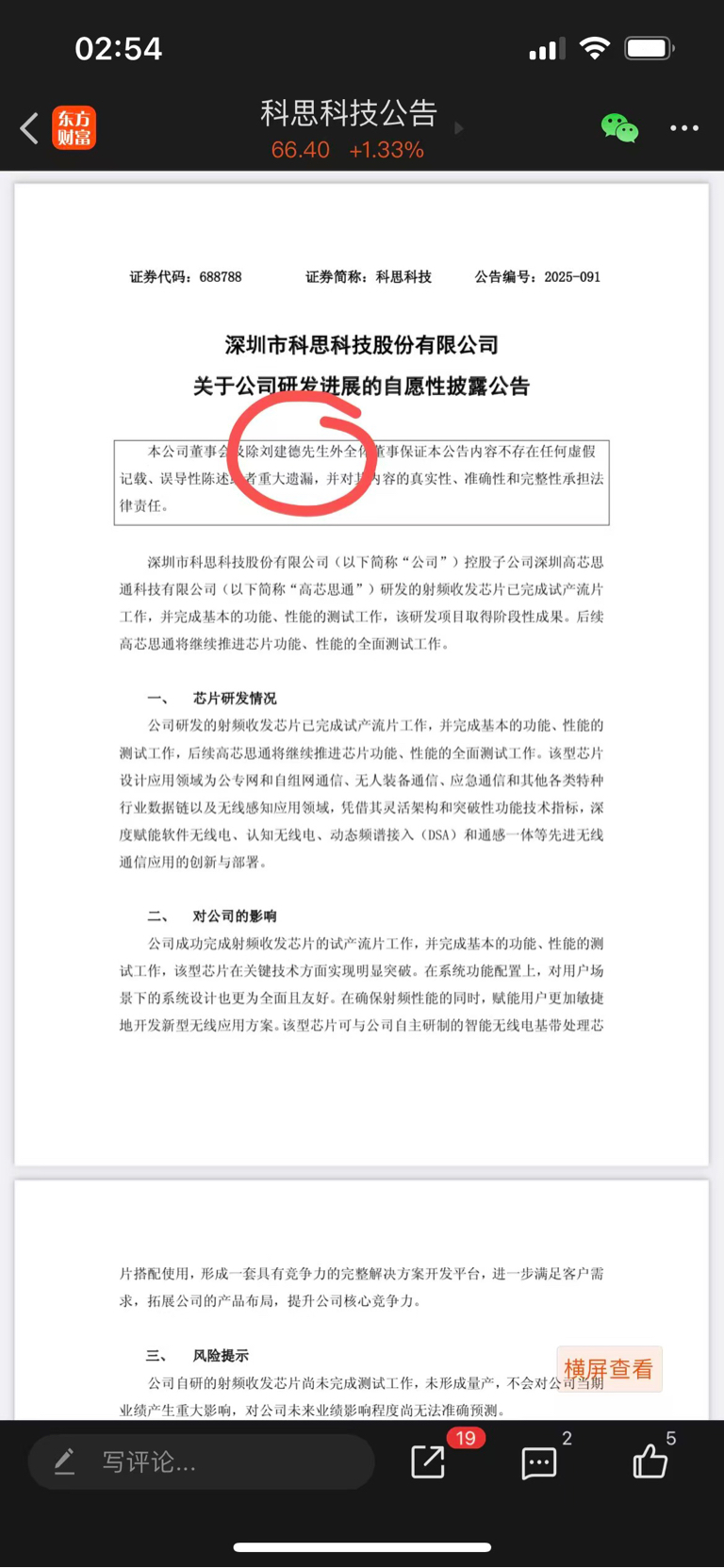 $科思科技(SH688788)$ 刚刚仔细阅读公告,所有人都没关注的细节来了,上一次科思科技自愿性披露人工智能无线通信基带芯片研发成功后股价压都压不住,而这次自愿性披露射频收发芯片公告最大的不同,是抬头备注框内“除刘建德外的董事会”,这几个字意味着董事会和上市公司已经实质性排除前任了……这个才是未来一旦改写实际控制人的最关键所在……另外,我有一个误区一直觉得军工股业绩太差所以不太希望科思科技停留在军工板块,但是从国际形势看,军工股反反复复就是业绩很差但股价表现很强主攻手就是花园石桥路陆家嘴的花旗银行大厦的高盛和几个外资机构。芯片则无需多说,科思科技的人工智能技术无线通信基带芯片还有NPU一旦研发成功就不是简单的估值了。