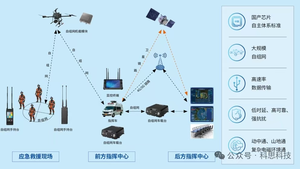 科思科技自研的“全域AI大模型无人集群系统”在消防作业、矿山作业、消防救援,医疗救援等应急领域的场景应用,提供全栈式智能应急解决方案。
