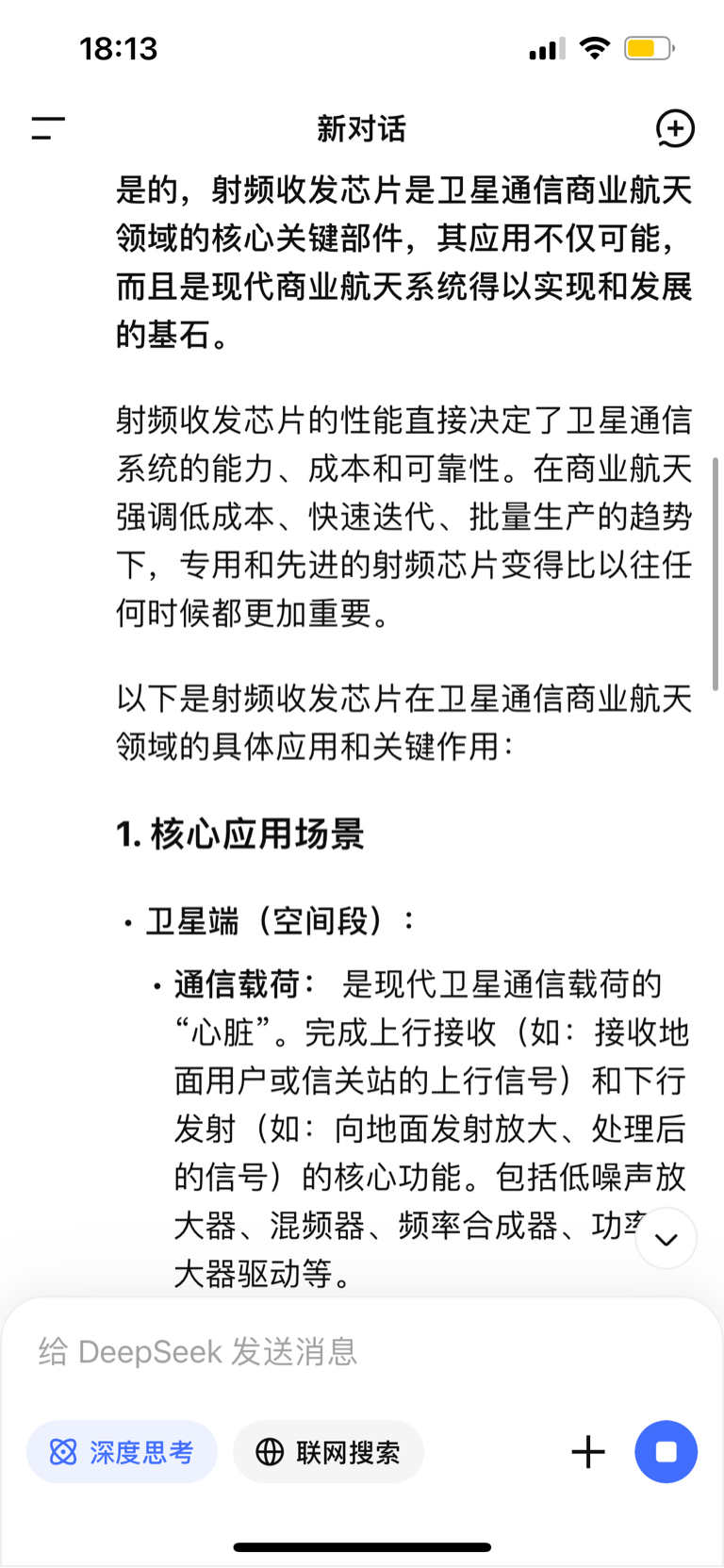 DS回答是非常确定的,无线自组网原本是靠系统软件和无线基带芯片,科思科技研发射频收发芯片技术毫无疑问是想让自主研发的自组网嵌入卫星通信技术。至于和臻镭科技相比如何并不重要,重要的是科思科技已经涉及卫星通信技术和商业航天领域的核心关键部件研发能力。
