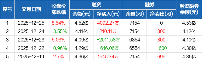 科思科技:融资净买入4092.27万元,融资余额4.52亿元(12-25)