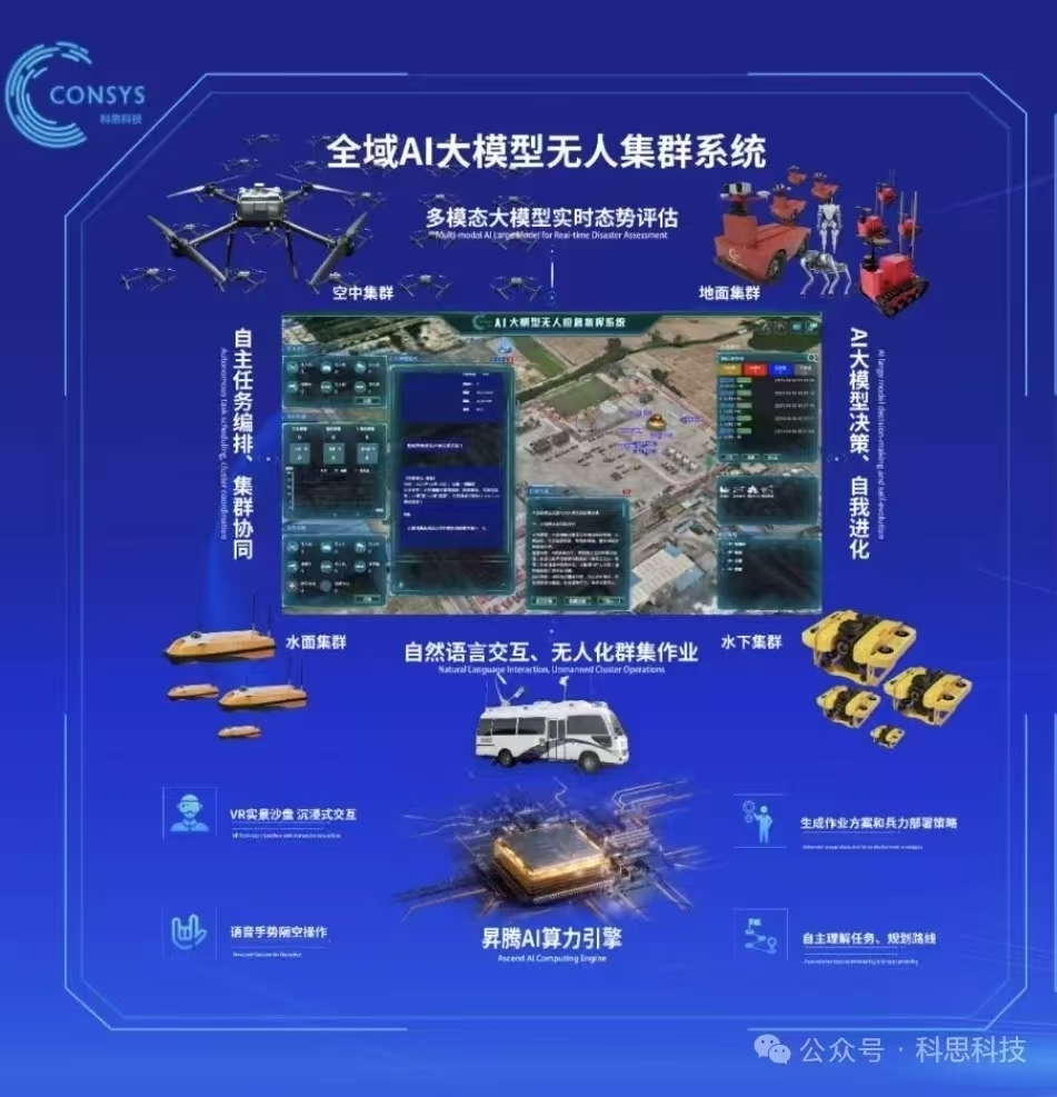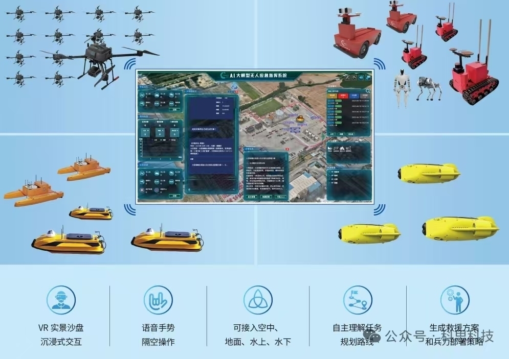 科思科技的海上,陆地,空天,水下,无人集群作战指挥系统。