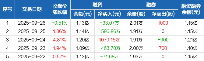 宏华数科:融资净偿还33.07万元,融资余额1.13亿元(09-26)