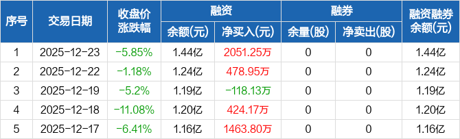 昂瑞微:融资净买入2051.25万元,融资余额1.44亿元(12-23)