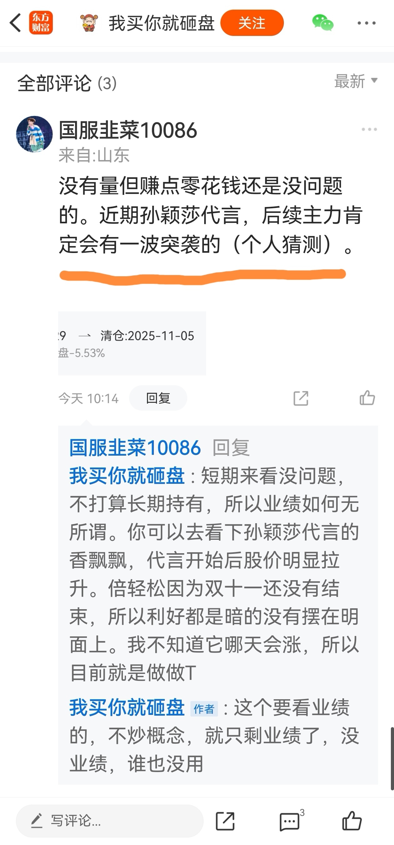温馨提示: 1.根据《证券法》规定,禁止编造、传播虚假信息或者误导性信息,扰乱证券市场;2.用户在本社区发表的所有资料、言论等仅代表个人观点,与本网站立场无关,不对您构成任何投资建议。用户应基于自己的独立判断,自行决定证券投资并承担相应风险。《东方财富社区管理规定》