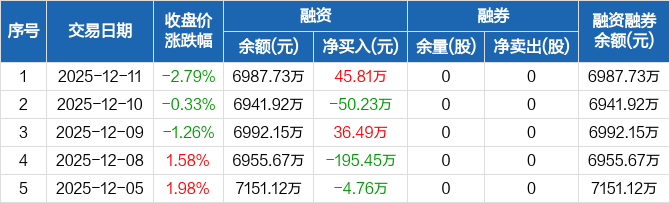 倍轻松:融资净买入45.81万元,融资余额6987.73万元(12-11)