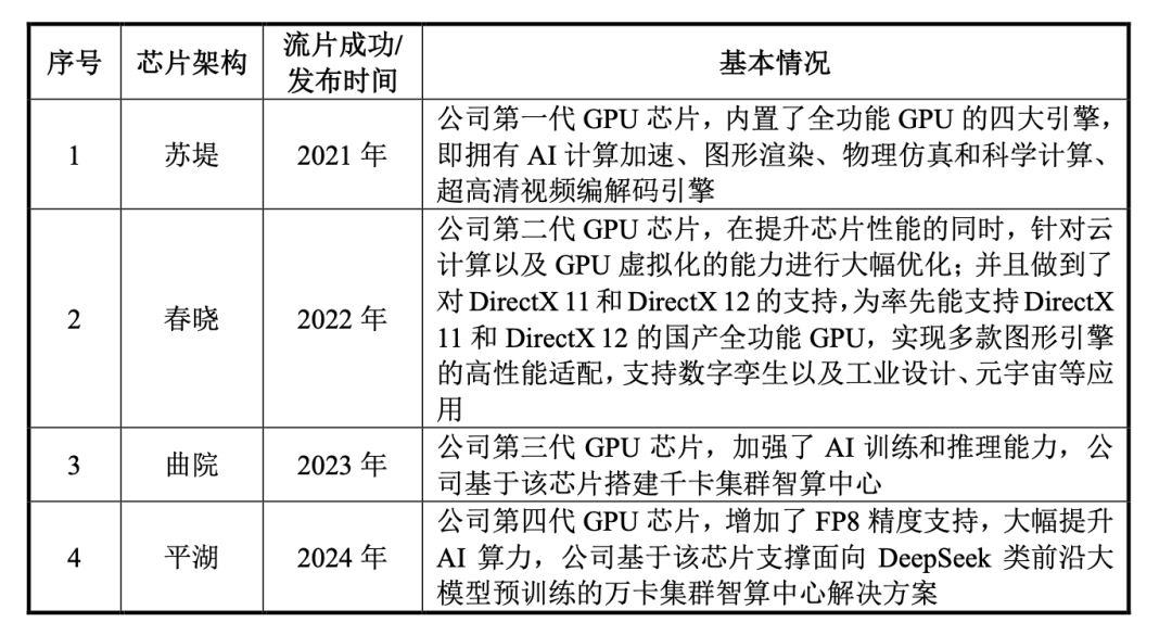 在国内一众GPU创业企业中,摩尔线程属于“后来者”——公司成立于2020年,晚于2018年成立的天数智芯和2019年成立的壁仞科技。不过,相比于天数智芯与壁仞科技均聚焦于GPGPU(通用并行计算GPU)路线,主打AI训练与高性能计算场景;摩尔线程坚持“全功能GPU”发展路径,其自主研发的MUSA架构能够同时支持AI计算、图形渲染、物理仿真、视频编解码及科学计算等多种负载,覆盖从消费级显卡到数据中心的广泛应用场景,被业界视为“最像英伟达”的中国GPU公司。