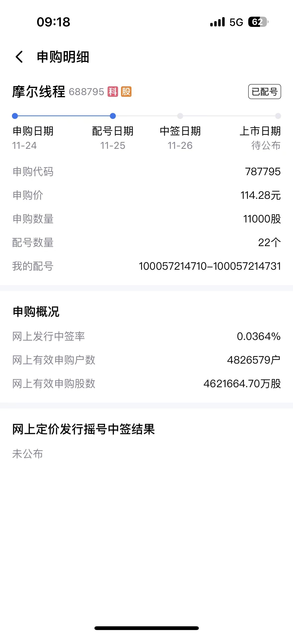 $摩尔线程(SH688795)$ 中签了
