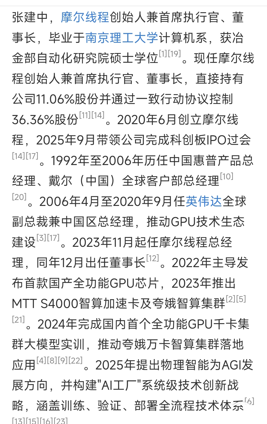 张建忠在英伟达做过高管 摩尔线程的总市值对标的是英伟达4.4万亿美元总市值!
