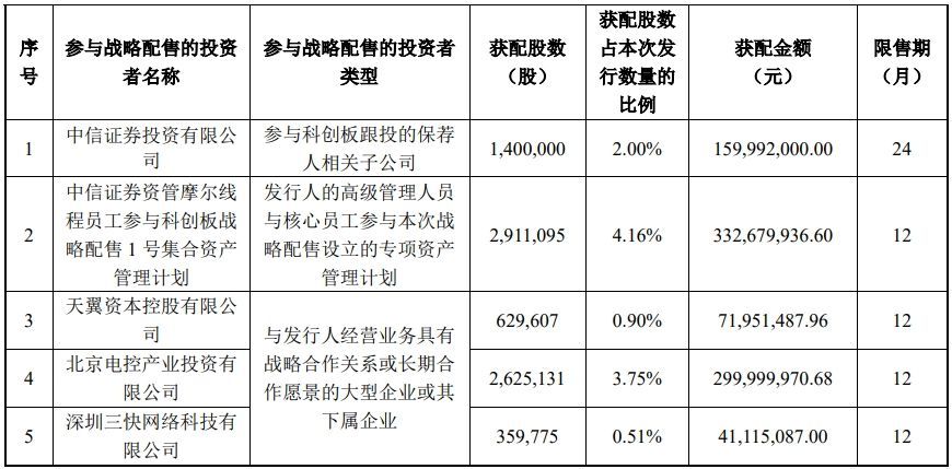 南方财经11月25日电,摩尔线程发布首次公开发行股票并在科创板上市网下初步配售结果及网上中签结果公告,本次发行战略配售的缴款及配售工作已结束,本次发行的参与战略配售的投资者均按承诺参与了本次发行的战略配售。经确认,《发行公告》中披露参与战略配售的投资者参与本次发行的战略配售有效。本次发行最终战略配售结果如下。中签结果如下。