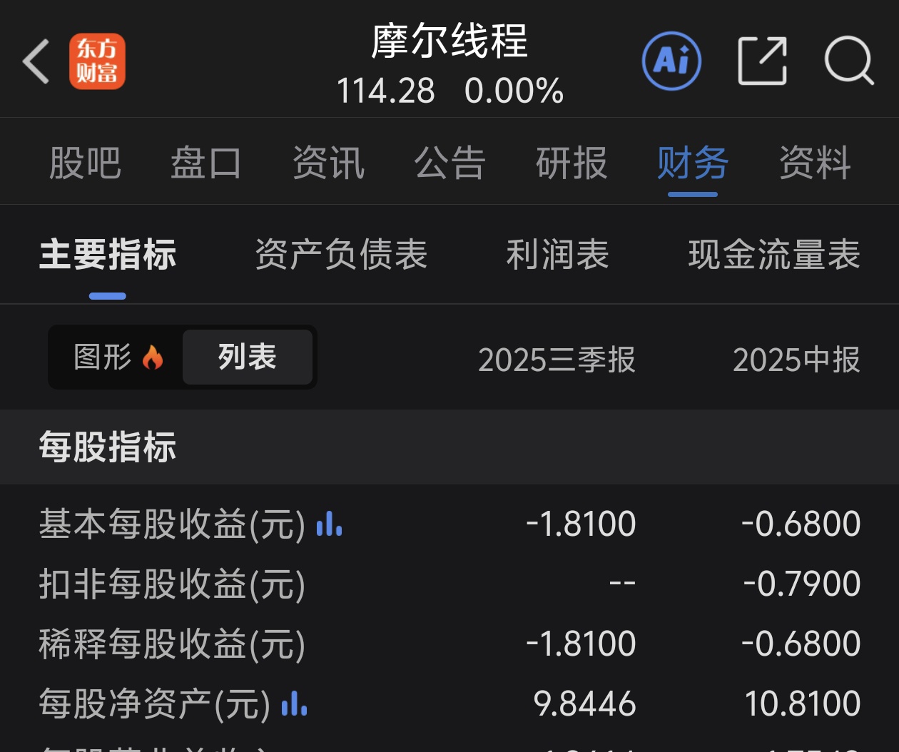 $摩尔线程(SH688795)$ 指尖划过中签通知的那一刻,满心兴奋,在仔细看了一下摩尔线程财报竟然严重亏损三季报亏损1.81元,顷刻间,懊悔像潮水般涌来,这上市的亏多少钱啊,要是当初仔细看一眼财报,要是不被“中签即赚”的惯性思维裹挟,要是多听一句市场的提醒,也不至于落得这般两难。