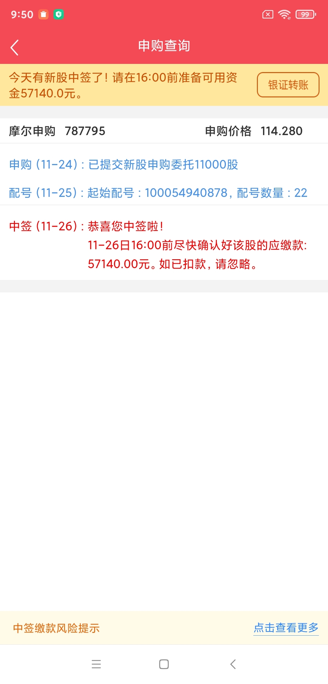 奶奶滴,就不能提前一天申购出结果吗,害我等到下午还是不涨只能割肉其它股票缴款了