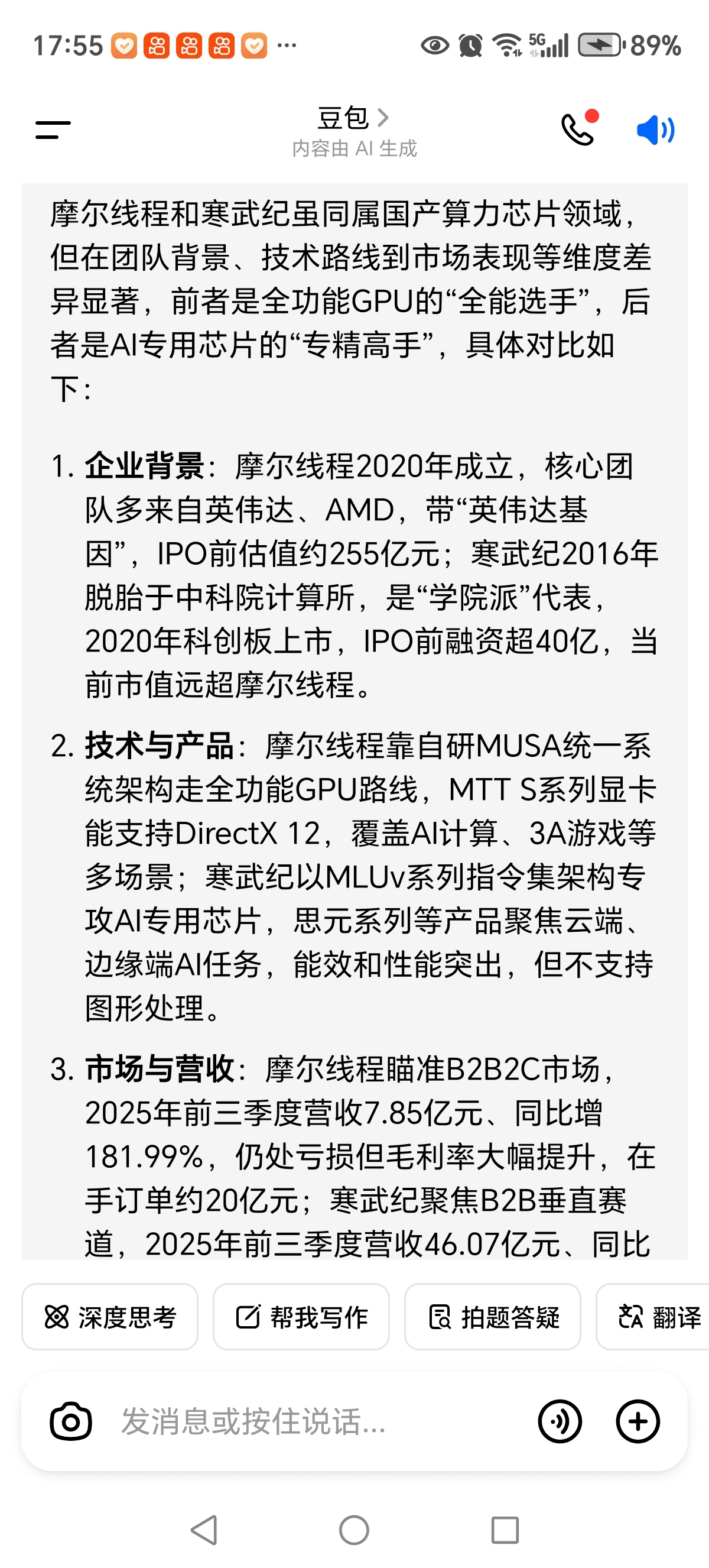 $摩尔线程(SH688795)$ 摩尔线程比寒武纪更全能更优秀,核心团队多来自英伟达,AMD,而且新型企业,创新更足,活力更足,国家投入的补贴更大